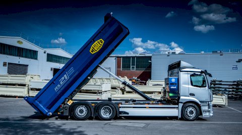 Arocs 1846 K 4x2 z wywrotką z żurawiem firmy Hiab